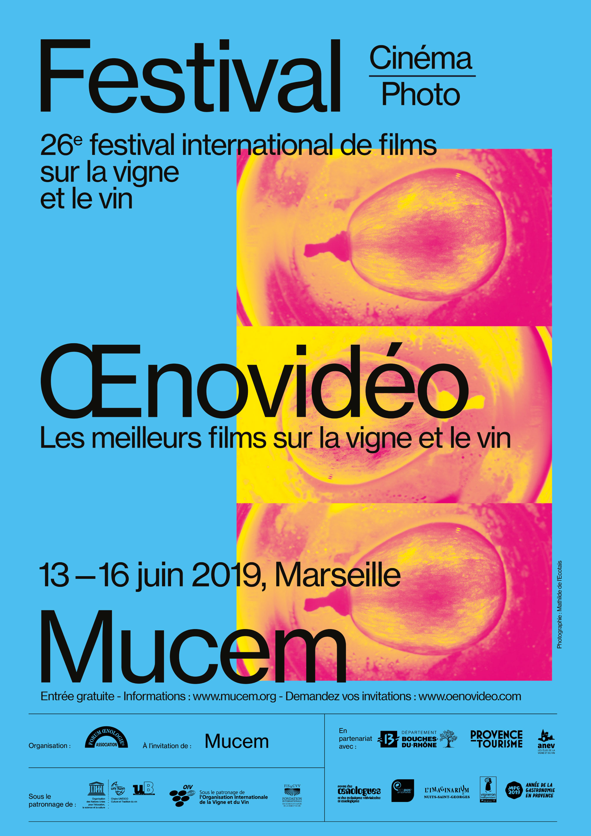 Festival itinérant, Œnovidéo s’installe cette année dans la cité phocéenne à l’occasion de Marseille Provence Gastronomie 2019. Il présente une centaine de films en compétition issus d’une vingtaine de pays (fictions et documentaires, courts et longs métrages) à l’auditorium du Mucem, ainsi qu’une exposition de photographies « Terroirs d’images » au Centre de la Vieille Charité.